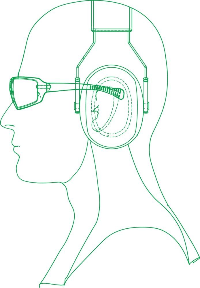 • Patentierte Bügeln ermöglichen Kombination mit Gehörschutzkapseln