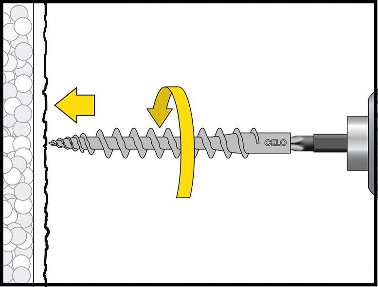 • Scharfe Bohrspitze für den Einsatz ohne vorbohren (Putz ≤ 7 mm)
