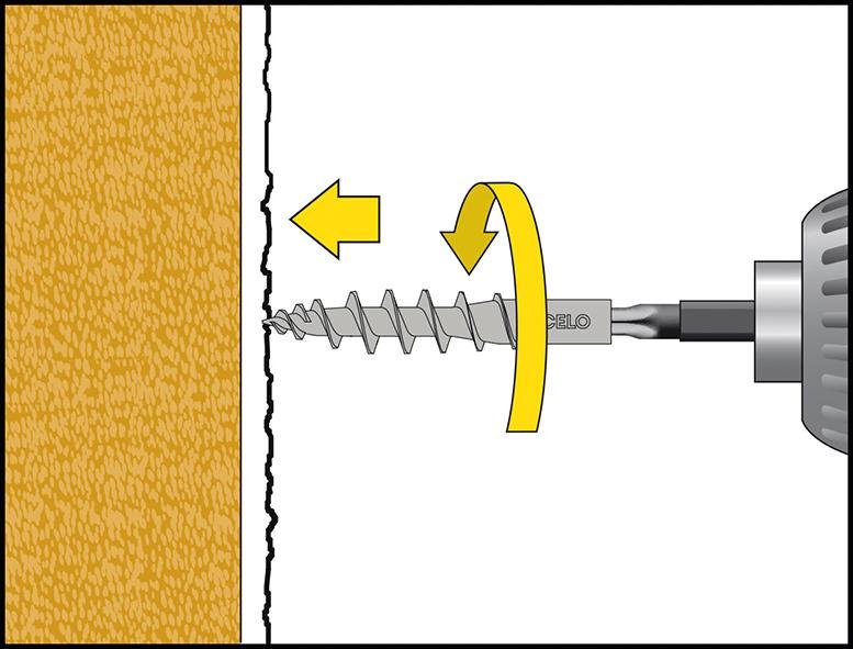 • Scharfe Bohrspitze für den Einsatz ohne Vorbohren (Putz ≤ 7 mm)