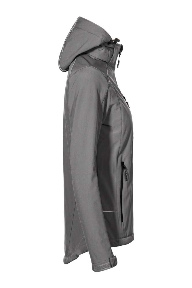Damen Softshell Jacke, abnehmb. Kapuze, steel grey