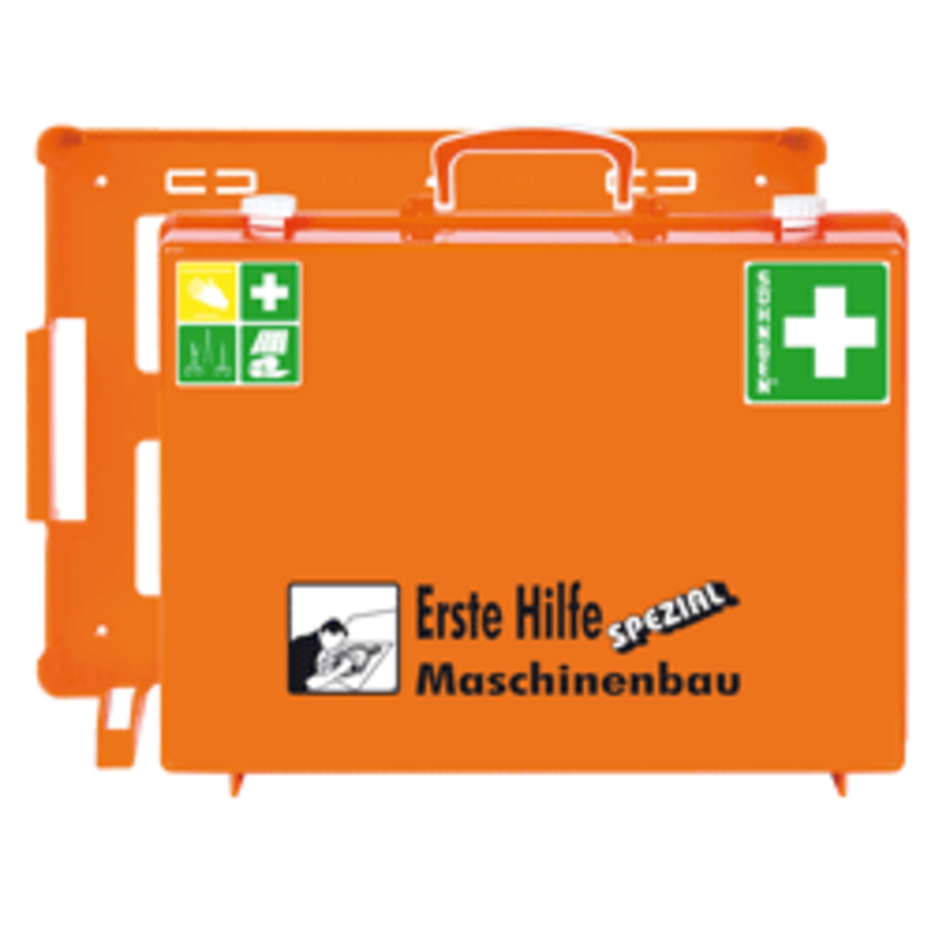 - Branchenspezifisch ausgestatteter Erste-Hilfe-Koffer für Betriebe im Maschinenbau.