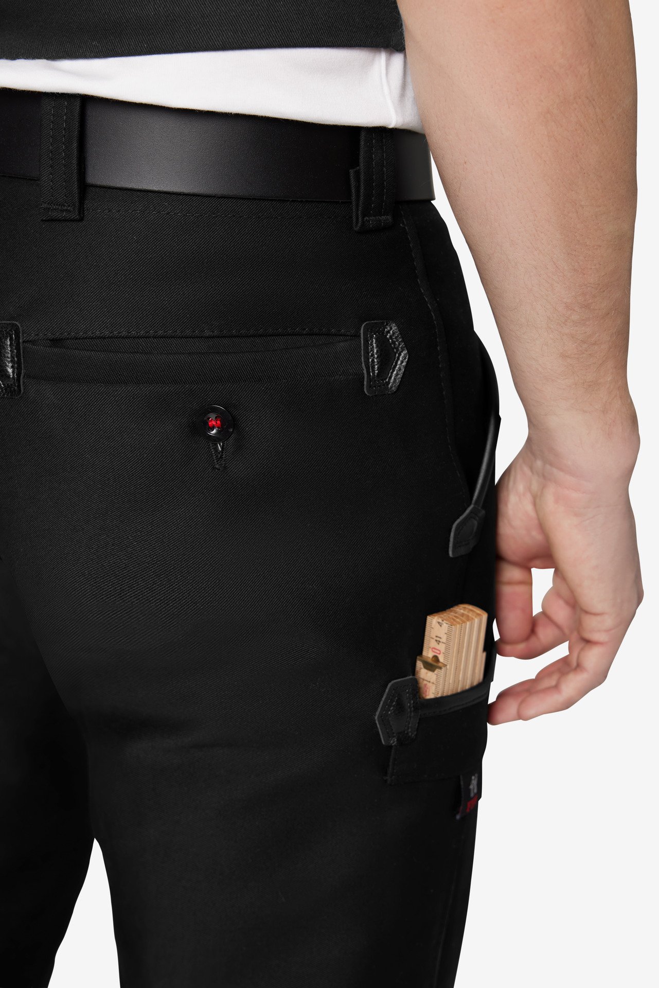 - Besonders robustes Gewebe für den intensiven Einsatz im Handwerk und auf der Baustelle.
