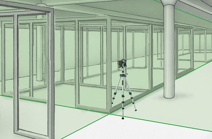 • Einzeln schaltbare, horizontale 360°-Laserlinie und zwei vertikale 360°-Laserlinien
