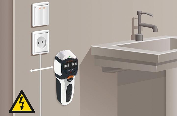 Gezielte Ortung von Stromleitungen, spannungsführend (AC-Scan) bis 4 cm Tiefe