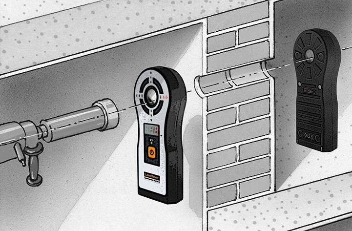 • System aus Sender und Empfänger ermöglicht einfache Ausrichtung des Bohrkanals bis zu einer Wanddicke von 150 cm