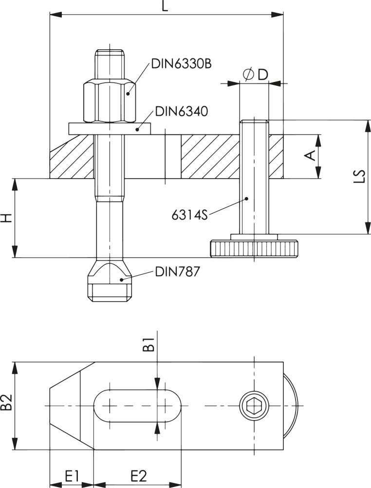 Lieferung: Mit Schrauben für T-Nuten DIN 787, Mutter und Scheibe.