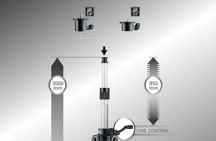Lieferung: Mit Tragegurt und 1/4"- und 5/8"-Gewindeadapter.