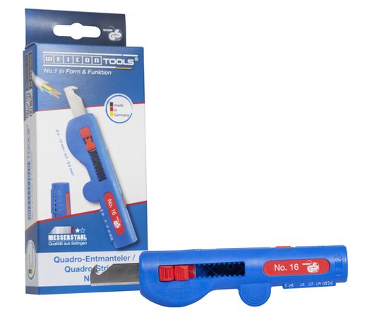 Der Quadro-Entmanteler No. 16 ist ein neu entwickeltes Werkzeug für den professionellen Anwender in Industrie und Handwerk. Das 4-in-1-Werkzeug erfüllt mehrere Funktionen: Rundschnitt – Längsschnitt – Abisolieren – Schneiden. So können mehrere Werkzeuge durch ein einziges ersetzt werden. Das spart Geld und Platz im Werkzeugkoffer.