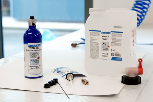 Zum Zubehör-Programm für die WSD 400 gehören neben einem Adapter zum Befüllen an jeder Druckluftanlage auch ein Sprühset mit vier verschiedenen Sprühköpfen und einem Kugelventil mit Ansaugrohr.