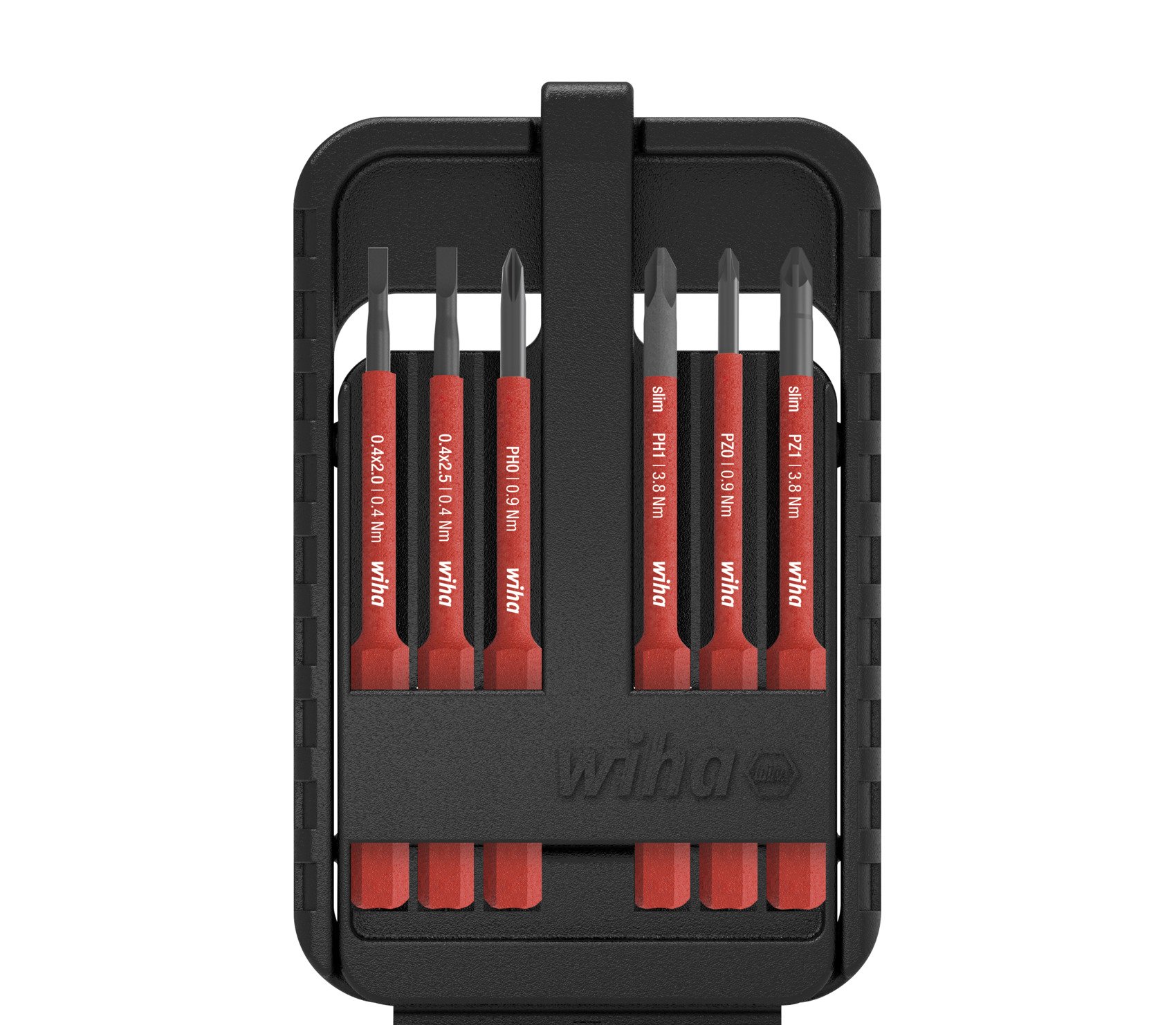 Um tiefliegende Schrauben erreichen zu können, ist der Klingendurchmesser bei herkömmlichen Elektrikerschraubendrehern häufig zu groß. Das Entfernen der Isolierung ist jedoch unzulässig und gefährdet zudem die eigene Sicherheit. Bei der speziell für elektrische Anwendungen entwickelten Wiha slimTECHNOLOGY wurde die Schutzlisolation in die Klinge intergriert, um bis zu 33% schlankere Klingen zu ermöglichen. So können mit den slimBits auch tiefliegende Schraub- und Federelemente mühelos erreicht werden. Die isolierten slimBits werden gemäß der internationalen Norm IEC 60900 einer Stückprüfung unterzogen und ermöglichen ein sicheres Arbeiten im Bereich von spannungsführenden Teilen bis 1.000 V AC. Zudem sind die slimBits in einer smarten Bitbox verstaut, welche eine optimale Einsicht auf die Schraubprofile gewährt. Die 6 mm slimBits sind nur im speedE®, slimVario® oder TorqueVario®-S electric Werkzeugen zu verwenden.
