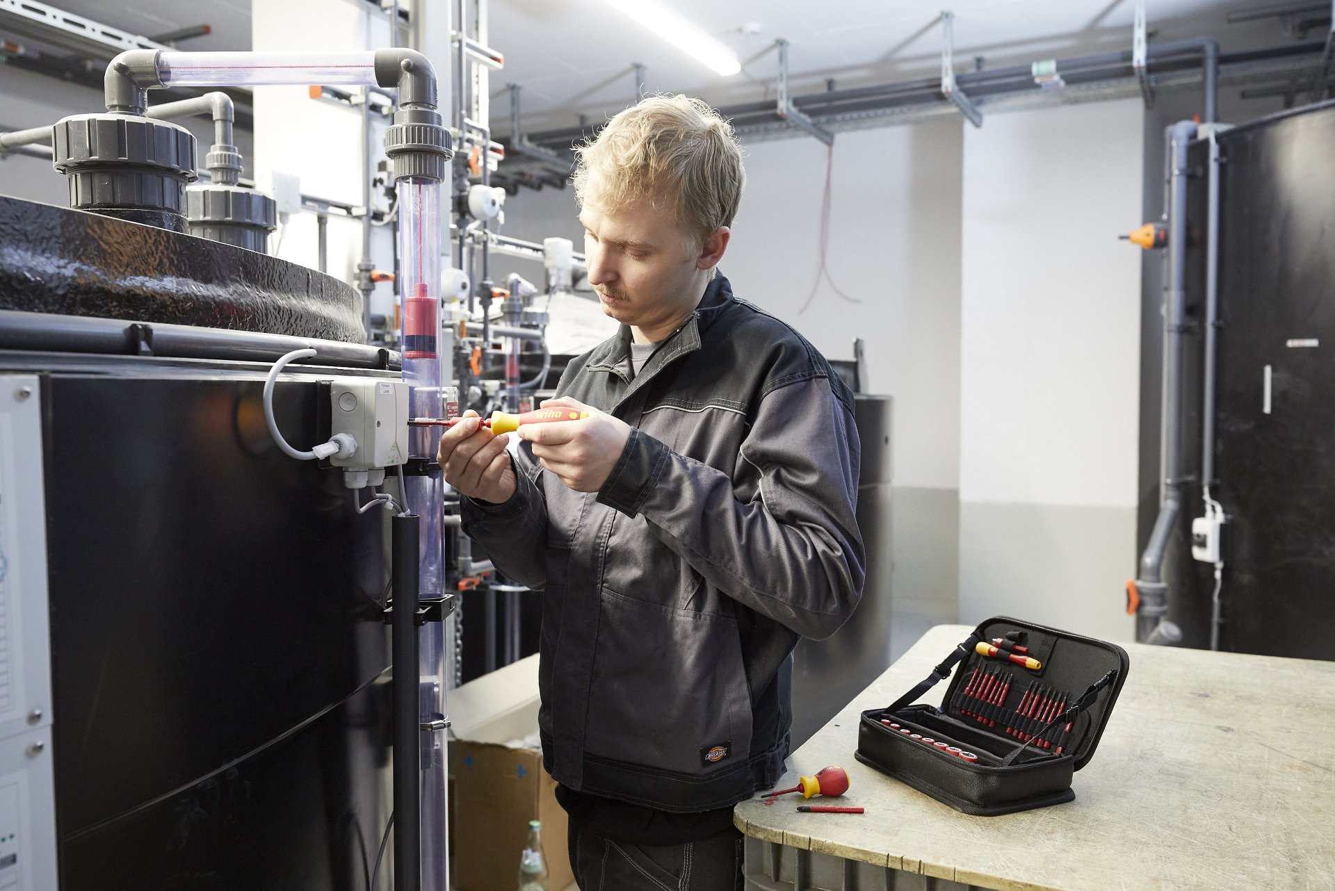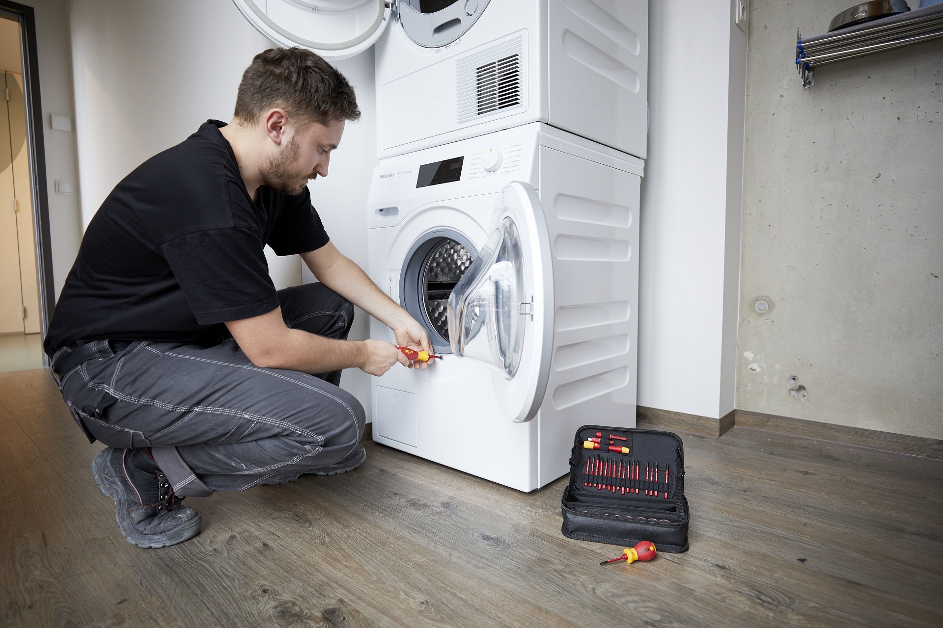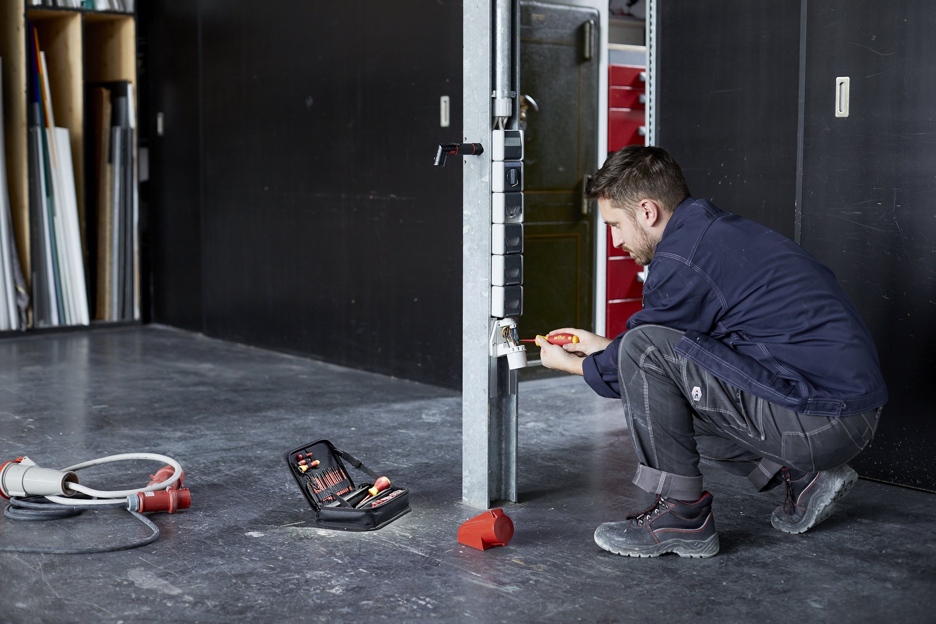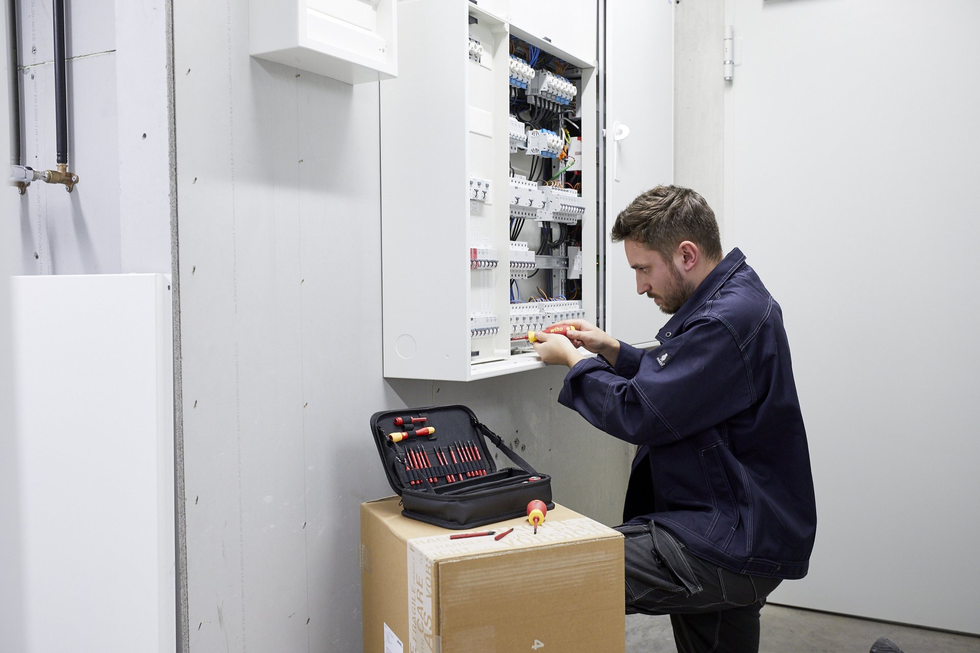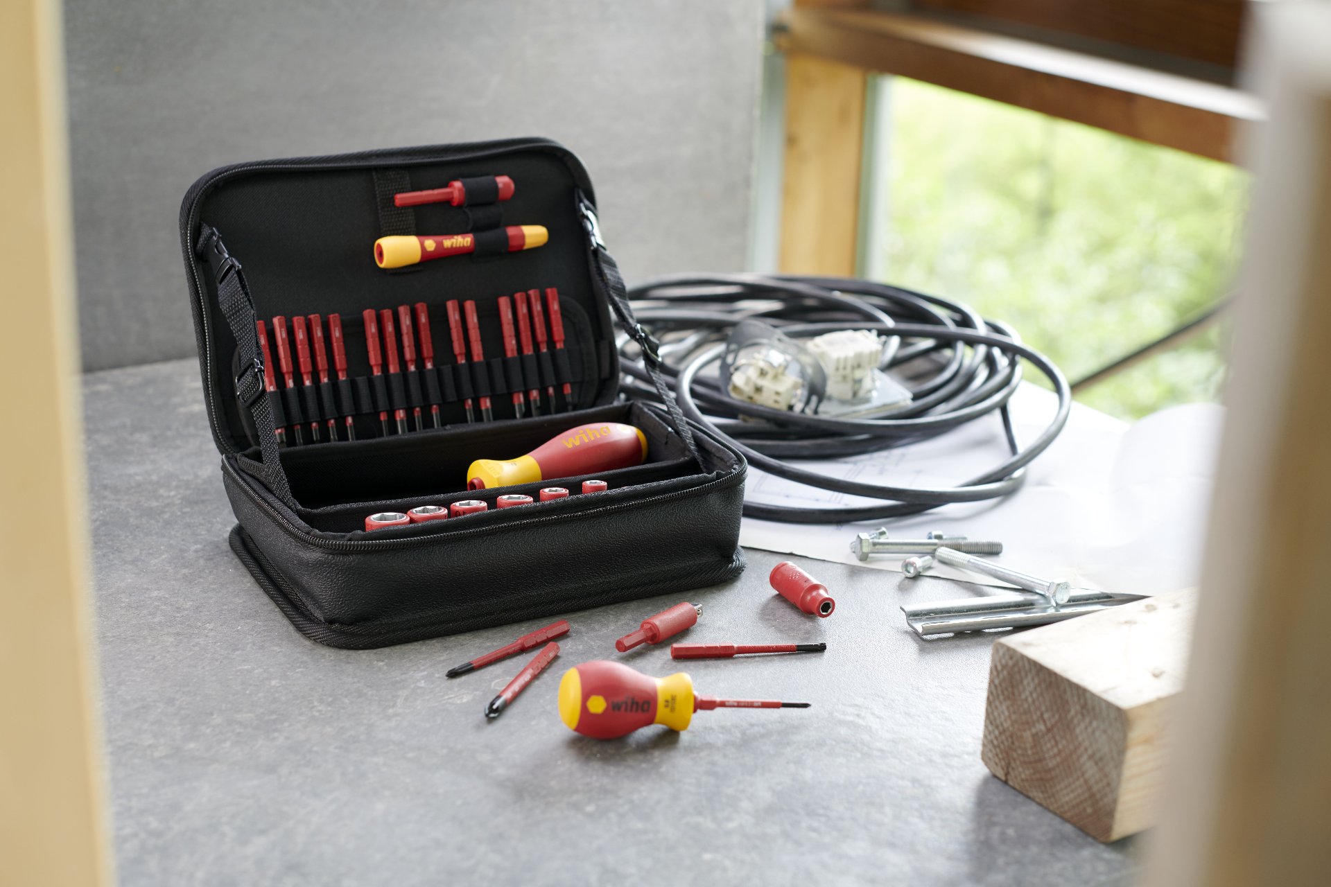 Bei Arbeiten an unterschiedlichen Einsatzorten wie z.B. auf Baustellen, an Solaranlagen und in Schaltschränken werden viele verschiedene Schraubprofile benötigt. Das 32-tlg. Set deckt alle gängigen Schraubprofile ab und ist somit flexibel einsetzbar. Sicher verstaut und geordnet in einer robusten Funktionstasche sind die Elektriker-Werkzeuge perfekt für den mobilen Einsatz geeignet. Als Träger eines Design-Awards begeistert die Tasche von Wiha neben dem patentierten Design, auch durch multifunktionale Einsetzbarkeit. Ein weiterer Pluspunkt ist die multifunktionale Einsetzbarkeit der Tasche. In aufgeklapptem Zustand fungiert sie als Werkbankständer zur leichten Entnahme der Werkzeuge. Die Lasche zum Aufhängen an der Wand sowie der herausnehmbare Einlegeboden schaffen einen zusätzlichen Mehrwert. Das Werkzeugset bietet eine optimale Platzeinsparung durch ein umfangreiches Wechselbitsystem. Dank der Wiha slimTechnology können die enthaltenen slimBits mit ihrer bis zu 33% schlankeren Klingen auch tiefliegende Schraub- und Federelemente mühelos erreichen. In Kombination mit dem extra kurzen Stubby-Griff können die Schrauben insbesondere an Engstellen mühelos erreicht werden. Für feine und filigrane Verschraubungen ist der PicoFinish® Handgriff ideal geeignet. Der große SoftFinish® Längsgriff kommt zum Einsatz, wenn in Kombination mit den größeren slimBits Profilen beim Verschrauben mehr Kraft aufgebracht werden muss. Jedes Werkzeug im Set wurde gemäß der internationalen Norm IEC 60900 einer Stückprüfung unterzogen und ermöglicht ein sicheres Arbeiten im Bereich von spannungsführenden Teilen bis 1.000 V AC. Die 75 mm slimBits sind kompatibel zu allen Produkten der Wiha ElectricVario Family.