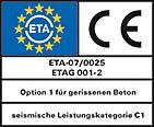 • Zugelassen für Beton C20/25 bis C50/60, gerissen; Beton C20/25 bis C50/60, ungerissen