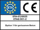 • Zugelassen für Beton C20/25 bis C50/60, gerissen; Beton C20/25 bis C50/60, ungerissen