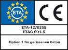 Zugelassen für: Beton C20/25 bis C50/60, gerissen und ungerissen